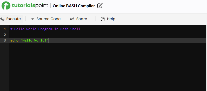 Online Bash Compiler - The best online Bash compiler and editor which allows you to write Bash Code, Compile and Execute it online from your browser itself. You can create Bash Project using Bash version GNU Bash v5.1.16. You can also Edit, Save, Compile,